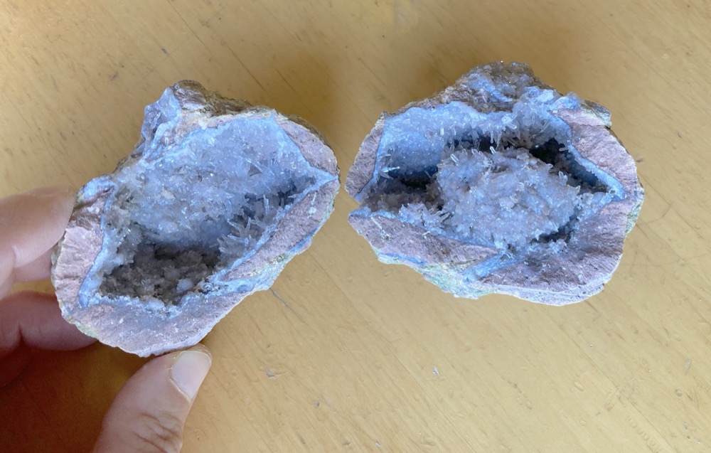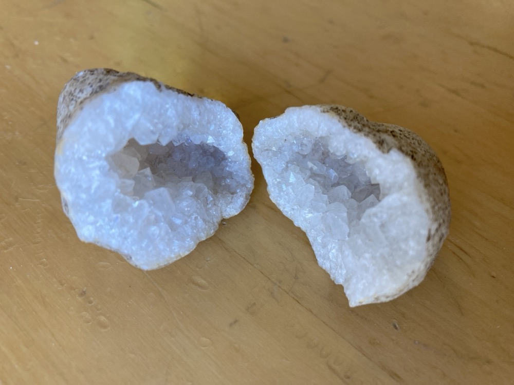 Summary Break open geodes to find the crystals inside. Science content Chemistry: Crystals (7) Earth/Space: Rock cycle, Earth Materials, Natural resources (5) Science competencies (+ questioning + manipulation + others that are in every activity) Evaluating: inferring (3 up) Lessons activity is in Crystals and crystal structure Rock observation and testing Materials geodes. Note that some are much better quality than others hammer old chisel if the geodes need to be opened cleanly old sock Procedure To break the geodes into many pieces, put one in a sock and hit it with a hammer. This will make many small pieces, that can be shared among students. If there are more geodes available, and each student can take home a larger piece, you can try to break the geodes open by breaking them into just two or three pieces using a chisel and hammer. Grades taught Gr 1 Gr 2 Gr 3