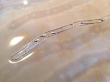 Summary Explore surface tension by floating paper clips on water, then breaking the surface tension with detergent. Science content Chemistry: States of Matter, Properties of Materials (K-7) Science competencies (+ questioning + manipulation + others that are in every activity) Planning/conducting: planning investigations (3 up) Evaluating: inferring (3 up) Lessons activity is in Floating, sinking and buoyancy Materials tray of water paperclips detergent toothpick Procedure By carefully lowering a paperclip onto the surface of the water, it will float. If you are having trouble, use another bent paper clip to lower it onto the water surface. Remove the bent paperclip from underneath once the other one is floating. How many paperclips can you float at once? They will tend to attract each other. Dip the toothpick in the detergent, then dip it in the water next to a paperclip. The surface tension will be disrupted and the paperclip will sink. At the surface of water, the water molecules attract each other relatively strongly so are pulled inwards. This gives water droplets their round shape, as well as making the surface of water behave as if it has an elastic skin. Light things are held up by this skin, such as water striders, and paperclips. Detergent molecules interact with the water molecules and reduce the surface tension of the water. Hence the surface of the water is no longer able to hold up light objects. Grades taught Gr 3 Gr 4 Gr 5