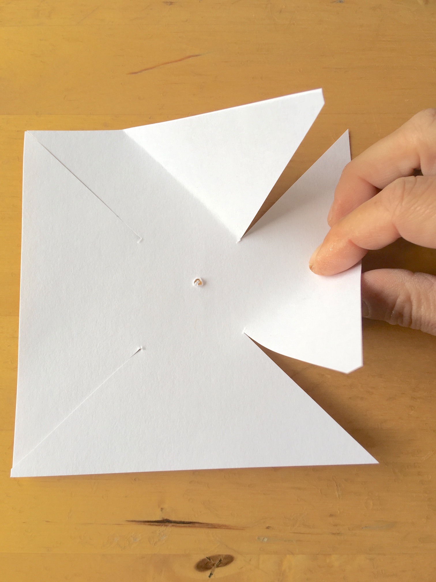 Summary Students make a hand-held pinwheel. Use to discuss the forces that make it turn, or the energy we give it to make it turn. Science content Physics: Motion and Forces, Newton’s Laws, Gravity (K, 2, 6) Science competencies (+ questioning + manipulation + others that are in every activity) Planning/conducting: planning investigations (3 up) Evaluating: inferring (3 up) Lessons activity is in Forces in toys Energy forms and transformation Materials Model 1 (simpler, but is blown from above): square of cardboard, 15cm/5.5 inches square small tube or pen cap skewer Model 2 (more complex but can be blown from the side): windmill template (see attachment) with small holes pre-made in the corners 4 beads, about 2-5mm diameter wire, 10cm long, about 0.5mm thickness a pencil with an eraser end duct tape (about 2x2cm) Procedure Model 1 (easiest): With a pair of scissors, push a hole through the centre of the card, or students can do it. Cut from each corner towards the central hole, about 2/3 way in (leave a central area that is uncut to give it stability) - see photo. Fold each corner upwards along the cut line (see photo), folding each segment in the same direction around the central hole. Push a tube or pen cap through the central hole, then place on a skewer. Blow from above to make the pinwheel turn. It may also turn from the side if the blades are angled appropriately. Model 2 (harder): Cut the windmill template (see attachment below) along the lines. Twist the end of the wire into a loop, and add a bead against the loop (best done ahead of time with pliers). Fold one corner of the paper template into the centre, push the wire through the hole at the corner, then fold over the next corner and push the pin through the hole on this corner. Continue with the last two corners, then add a bead to the wire before pushing the pin through the central dot. Finally add two more beads (they keep the windmill spaced away from the pencil), and then push the wire through the base of the pencil erasor. Wind the wire around the pencil, and cover with duct tape to secure. Discuss in terms of force: our breath exerts a force on the pinwheel blades that make them move. Discuss in terms of energy transfer: our breath is motion energy that it converted to the motion energy of the turning pinwheel. Attached documents windmill_template.pdf Notes Older grades looked at an example of Model 2 to figure out how to make their own. Grades taught Gr K Gr 1 Gr 2 Gr 4 Gr 5 Gr 6