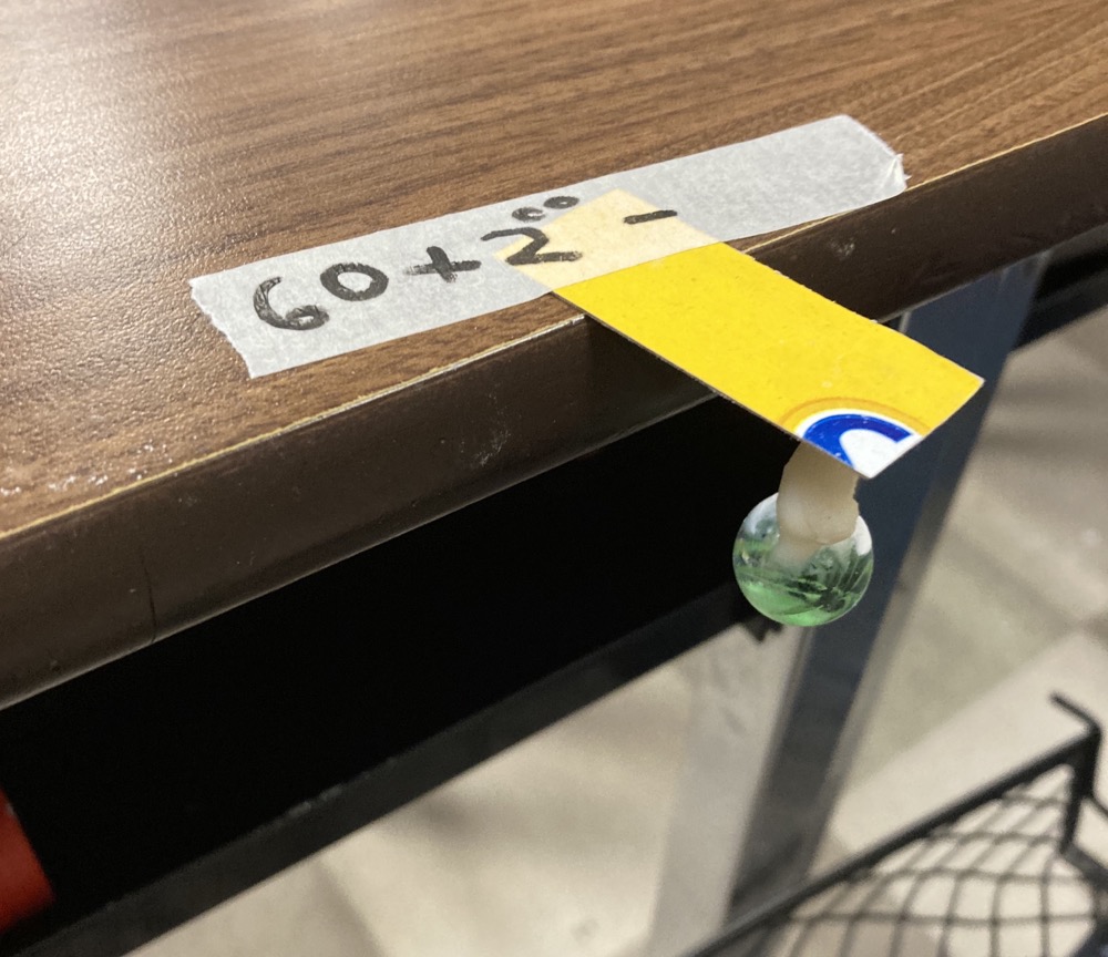 A long-lasting recipe can be taped upside down over the edge of the table so other recipes can be tried while it is hanging - note the time that it was taped along with the seconds counted up to that point. When the marble drops, calculate the seconds elapsed. At the final discussion calculate the stick time for those still sticking - do the math together to calculate the number of seconds from the number of minutes.